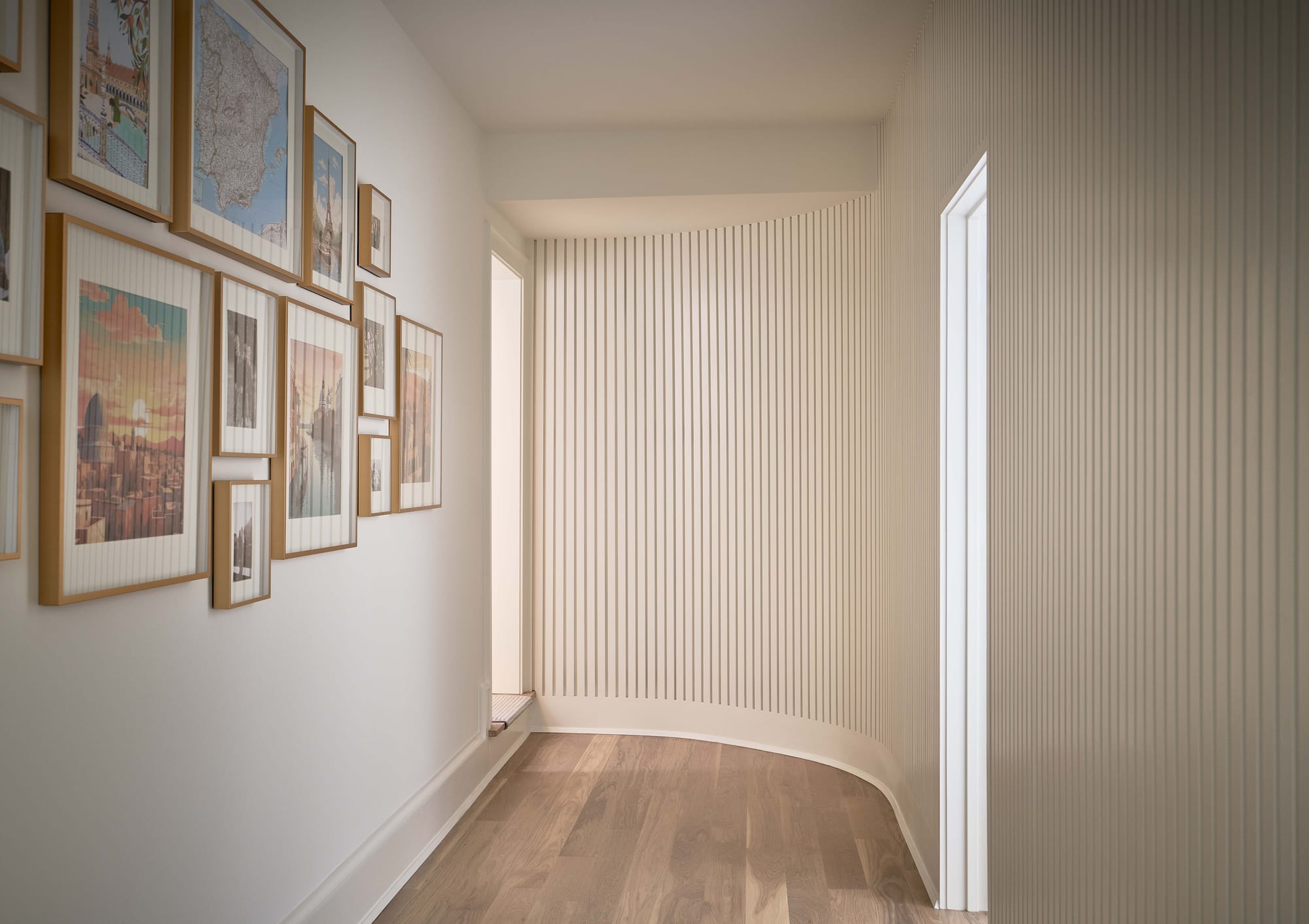 The exterior was given a fresh look with limewash, while new windows, front door, cabinetry, and hardwood floors were installed throughout.